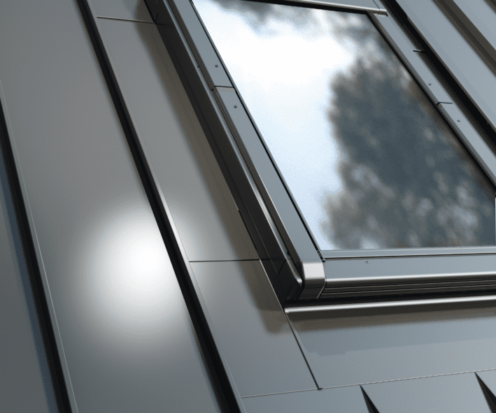 För stående falstak låter R dig koppla ihop fönstret med plåttak, till exempel med en stående fals.